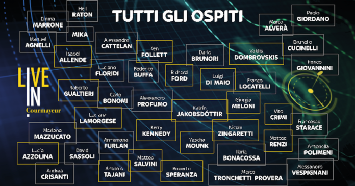 Tra gli ospiti i ministri Lucia Azzolina, Luigi Di Maio, Roberto Gualtieri, Luciana Lamorgese, Roberto Speranza e i leader di partito Vito Crimi, Giorgia Meloni, Matteo Renzi, Matteo Salvini, Antonio Tajani e Nicola Zingaretti. E ancora il presidente del Parlamento europeo David Sassoli e il vicepresidente della Commissione europea Valdis Dombrovskis, la premier islandese Katrín Jakobsdóttir. E ancora il presidente di Confindustria Carlo Bonomi e la segretaria della Cisl Annamaria Furlan, l’economista ed ex ministro Enrico Giovannini, l’imprenditore Brunello Cucinelli e i manager Alessandro Profumo, Francesco Starace e Marco Tronchetti Provera. Gli scienziati Andrea Crisanti, Franco Locatelli e Alessandro Vespignani e gli accademici Luciano Floridi, Mariana Mazzucato, Antonella Polimeni. E poi nomi internazionali come gli scrittori Isabel Allende, Ken Follett e Richard Ford, l’attivista statunitense Kerry Kennedy, il politologo Yascha Mounk. Tra le figure extra politiche anche il cantante Dario Brunori e tutta la squadra di X Factor: da Alessandro Cattelan a ai giudici Manuel Agnelli, Emma, Hell Raton e Mika.