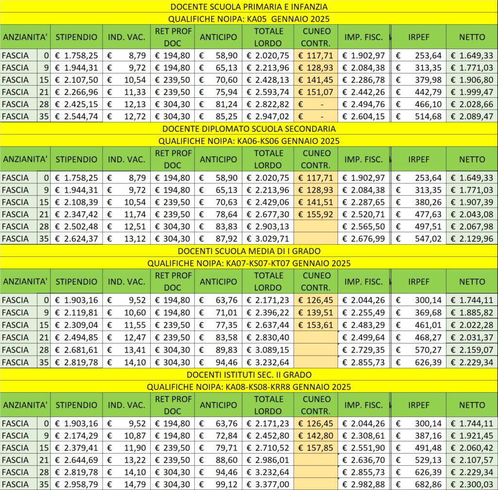 Ecco come si presentano i tabellari di gennaio con la decontribuzione di dicembre 2024 e senza il cuneo fiscale.