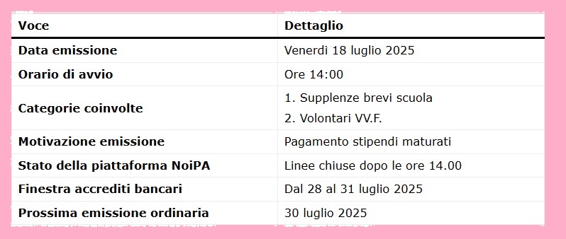 Nella giornata di oggi, 18 luglio 2025, è stata programmata l’Emissione Speciale a favore di docenti e personale ATA con contratto di supplenza breve.