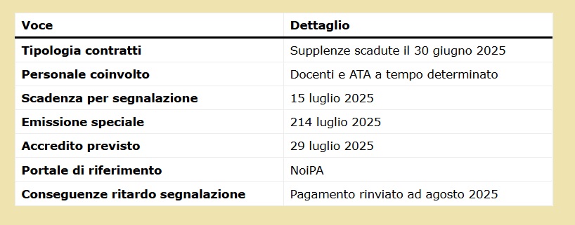 I pagamenti riguardano il personale scolastico – docenti e ATA – con contratti a tempo determinato scaduti il 30 giugno 2025, in particolare quelli stipulati fino al termine delle attività didattiche.