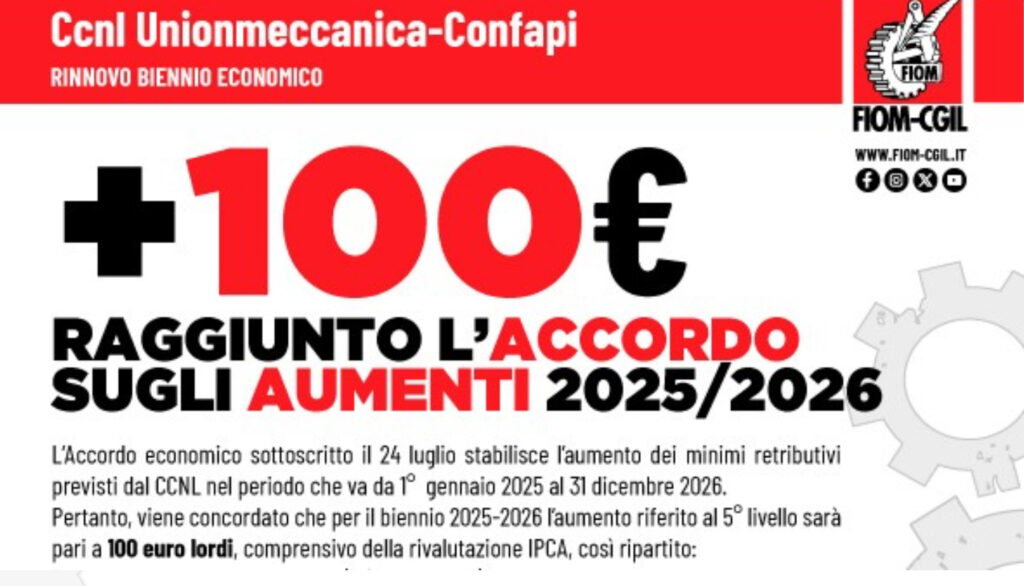 Fino a pochi giorni fa le parti erano distanti, anche se di poco. Unionmeccanica proponeva 95 euro, i sindacati chiedevano 105. La trattativa è stata serrata e si è chiusa con un accordo inaspettato: 100 euro complessivi, più della previsione IPCA. Un risultato che tutela i salari in un contesto inflattivo.