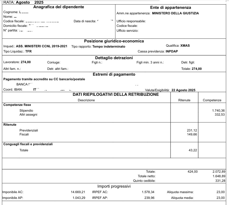 Mansioni principali: attività amministrative e di cancelleria, supporto al funzionamento degli uffici giudiziari.
