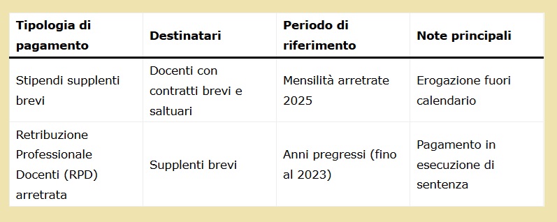 Questo ha permesso a migliaia di supplenti brevi di ricevere, nello stesso giorno, sia gli eventuali stipendi maturati nei mesi precedenti sia gli arretrati della RPD, in alcuni casi risalenti a più anni di servizio.