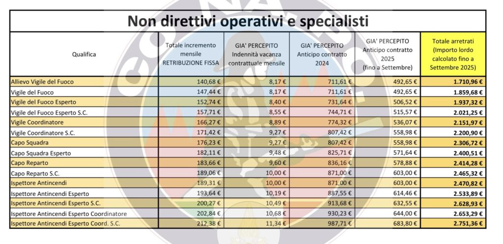 Diverso il discorso per la quota accessoria, che non sarà inclusa nell’emissione straordinaria di settembre. Il chiarimento arriva dal CONAPO, sindacato autonomo dei Vigili del Fuoco: l’arretrato sul trattamento accessorio, comprese le indennità spettanti al personale specialista, sarà liquidato solo in un momento successivo.