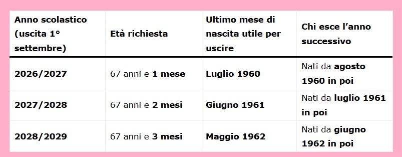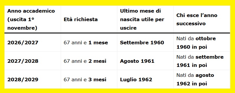 Dopo il 2029, l’età potrà aumentare ulteriormente in base ai successivi aggiornamenti demografici.