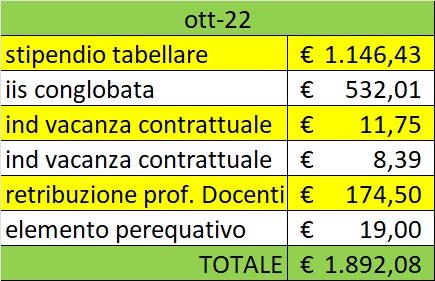 Il 22 ottobre 2022, all’insediamento del Governo Meloni, lo stipendio di un docente di scuola primaria era così formato: