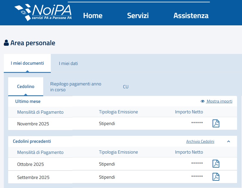 Per visualizzare il cedolino NoiPA di novembre 2025: