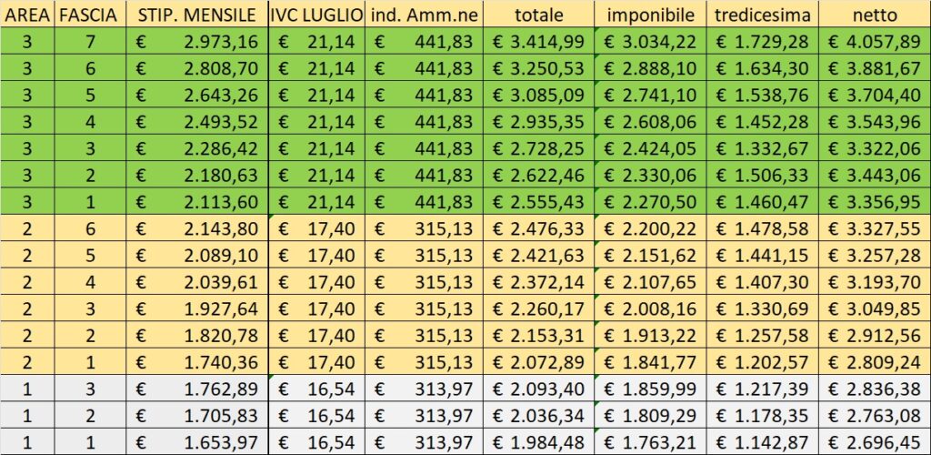 Come possiamo notare l’importo massimo per un funzionario delle funzioni centrali può arrivare ad oltre 4 mila euro netti.