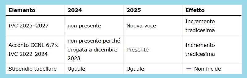 Tabella 2 – Perché la tredicesima 2025 della Scuola è più alta