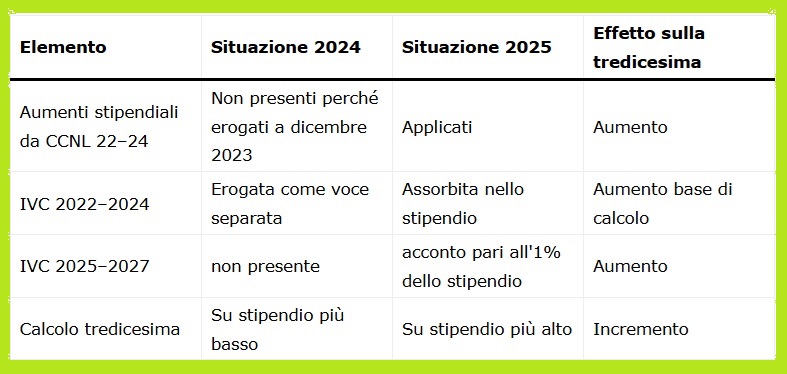 Risultato: tredicesima 2025 più alta rispetto alla tredicesima 2024.