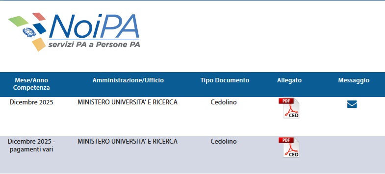 Per visualizzare il cedolino NoiPA di dicembre 2025: