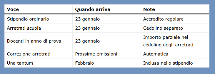 Questo importo non viene pagato a gennaio, ma sarà liquidato nel mese di febbraio, direttamente all’interno dello stipendio ordinario e senza cedolino separato.