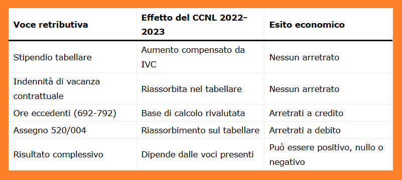 Ne deriva che gli arretrati del biennio 2022-2023 non sono automaticamente pari a zero, ma dipendono dalla struttura della retribuzione individuale.