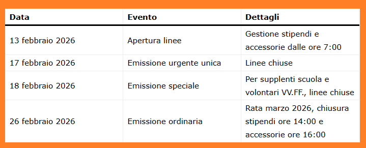 Il nuovo calendario ridefinisce le giornate di apertura e chiusura delle linee NoiPA e, soprattutto, sposta la data dell’emissione urgente unica.