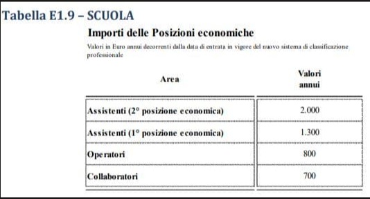 - 1.300 euro per la prima posizione economica degli Assistenti