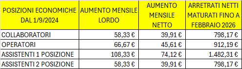 - pagamento degli arretrati con decorrenza settembre 2024;