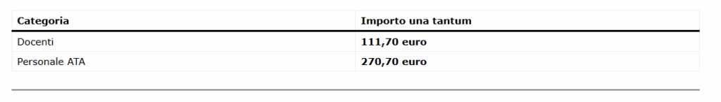 Importi dell’una tantum scuola