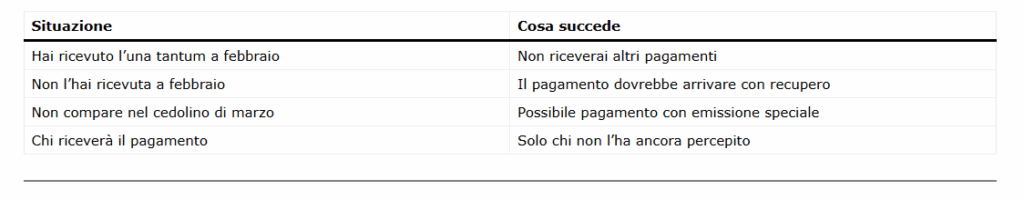 • chi l’ha già ricevuta nel cedolino di febbraio non la riceverà di nuovo