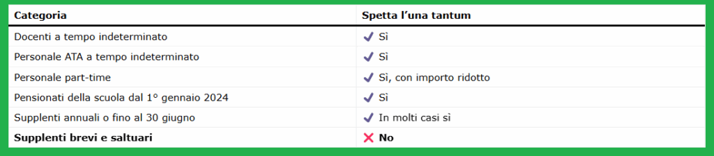 L’indennità non riguarda tutte le categorie di personale scolastico. Ecco il riepilogo dei beneficiari.
