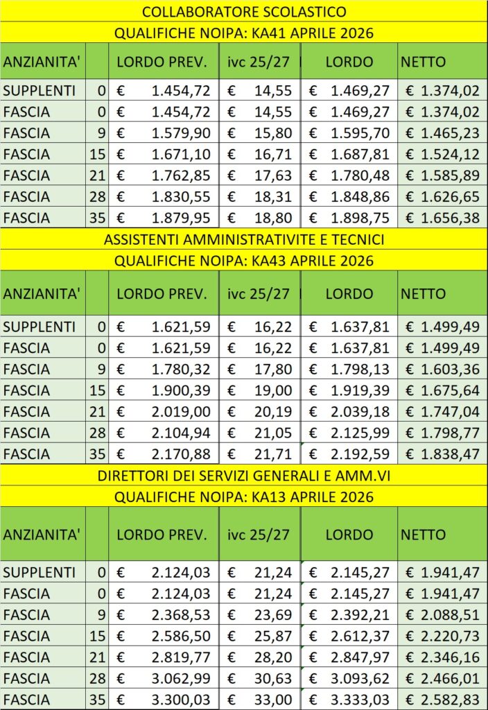Le nuove tabelle di aprile 2026 del personale ATA
