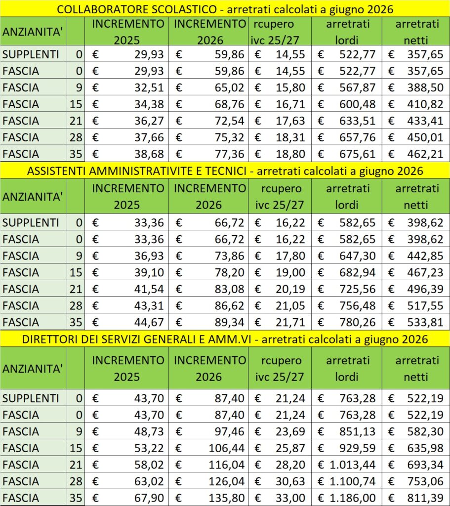 Ecco gli arretrati netti del personale ATA della Scuola calcolati a tutto giugno 2026, mese in cui è tecnicamente possibile che gli arretrati siano erogati.