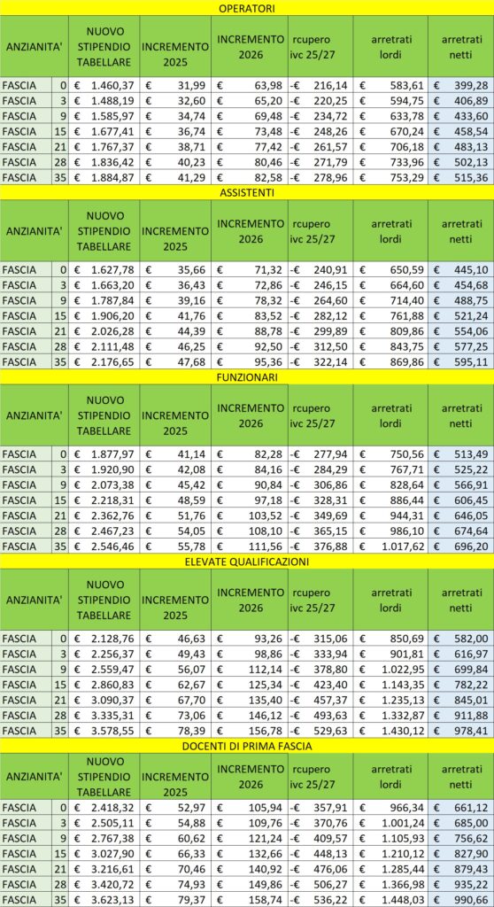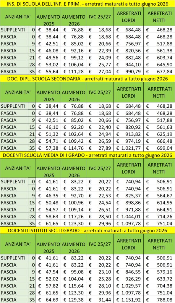 Nel complesso, gli arretrati si collocano in una forbice compresa tra circa 350 e quasi 1.000 euro netti, in base al profilo e all’anzianità di servizio.
