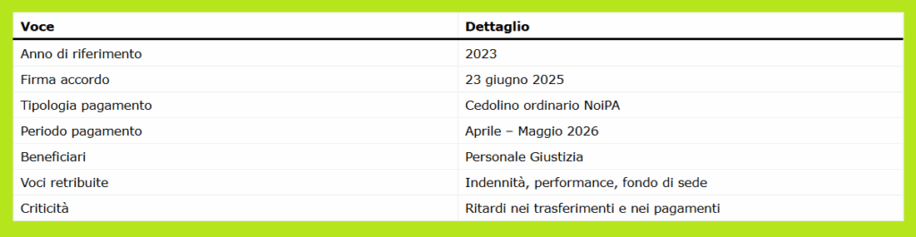 Dopo mesi di attesa e polemiche, arriva una svolta per i lavoratori della Giustizia: NoiPA procederà al pagamento del Fondo Risorse Decentrate (FRD) 2023 tra aprile e maggio 2026, con accredito direttamente nel cedolino ordinario.