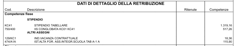 Si tratta di un cedolino di un operatore dell’ex comparto AFAM.
