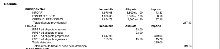 Come possiamo notare, questa parte riguarda i contributi previdenziali e le ritenute irpef.