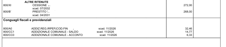 A livello individuale, come possiamo notare, ci sono ritenute che dipendono dalla fiscalità locale e dipendono dalla residenza, come le addizonali irpef e personali come i debiti contratti per cessione del quinto o delegazione di pagamento (secondo quinto ceduto).