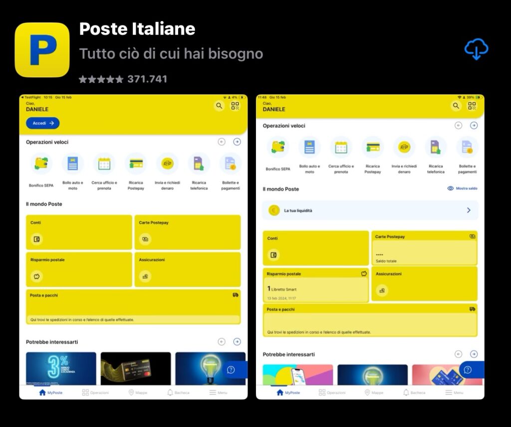 L’app “Poste Italiane” è disponibile su Google Play Store e Apple App Store. Ecco come si presentare nello Store: